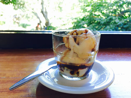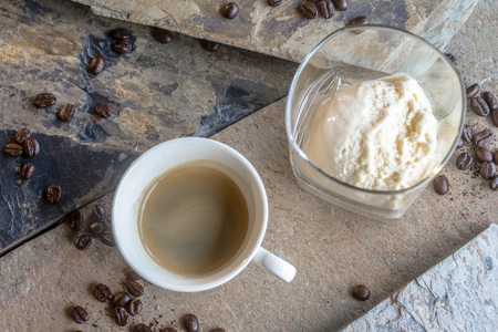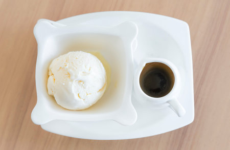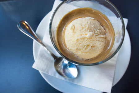 Vanilla ice cream topped with coffee It's a novelty for people who like ice cream and coffee.