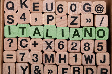 Back to school words on in English on black letter board on the left, flag of Italy as backgrond on the right.Concept of beginning of new educational period in Italy, hygienic new normal.Copy space.