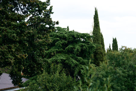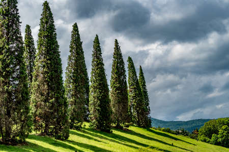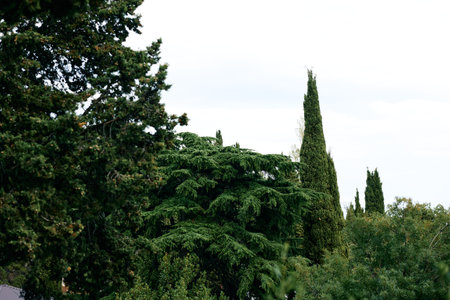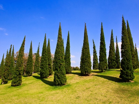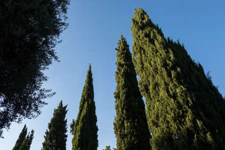 Very tall cypress trees in a Park in southern country
