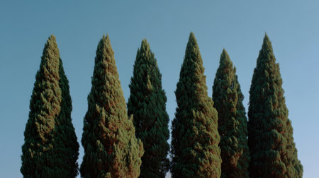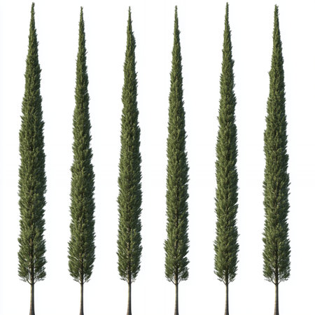 Tall Italian Cypress Trees Nature Green Conifers Botanical Garden Plants Evergreen Sky Row Set Slim