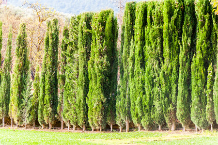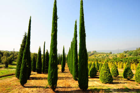 Cypress Trees in The Nursery Garden in Tuscany, Italy