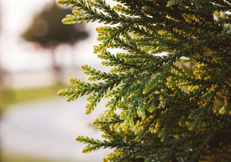 Thuja foliage texture. Nature background. Abstract natural texture