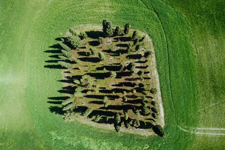 Aerial view of the Tuscany cypress landscape in springtime