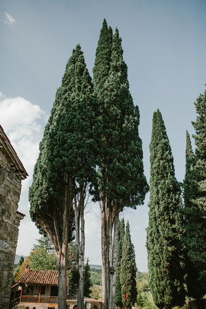 Amazing Cypress trees in a park near St. Stefan, Montenegro.