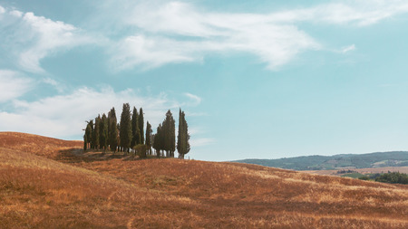 Classic Tuscan view with cypress trees. Colorful summer view of Italian countryside, Italy, Europe. Beauty of countryside concept background.