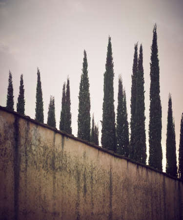 Cypress Trees in the Nursery Garden in Tuscany, Retro Effect