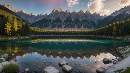 Landscape of the lake in the Dolomites, Italy.