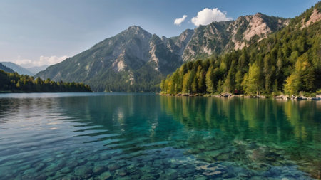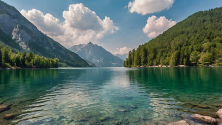 panoramic view of alpine lake in the mountains, Austria