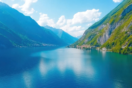 Experience the tranquil beauty of Lake Como, where stunning villas nestle along the sparkling waters surrounded by vibrant greenery.