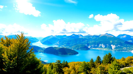 panoramic view of beautiful alpine lake in autumn, Austria
