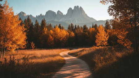 Autumn landscape with colorful forest in Dolomites, Italy.