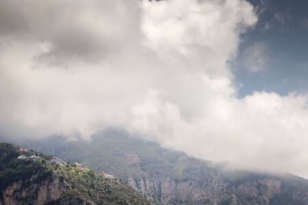 Amalfi cityscape on coast line of mediterranean sea, traveling in Italy