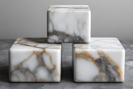 Three square marble pedestals on a grey background, 3D rendering, minimalism, empty space for product presentation. --ar 3:2 --stylize 750 --v 6.1 Job ID: 6e0c739d-99fc-4834-bec7-5cad779ae014