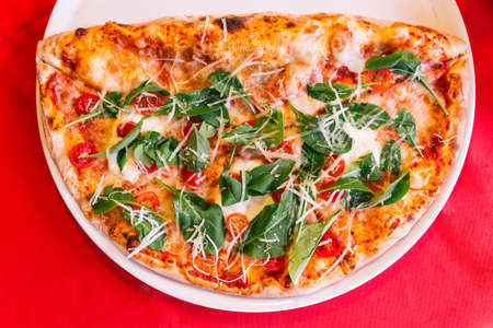 Italian Pizza Margherita (Margarita) with tomato and Mozzarella cheese.