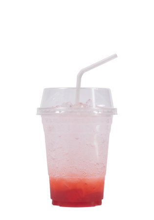 Freshness strawberry and soda in a plastic glass, Eating healthy, Isolated on white background
