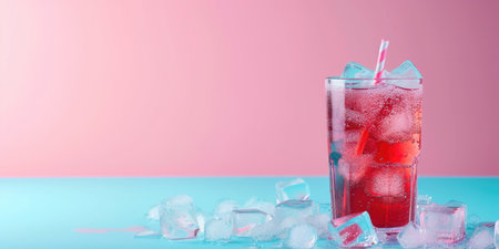 Red soda soft drink with ice
