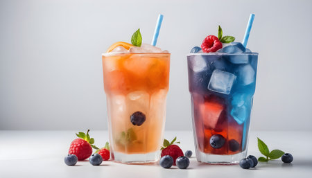 AI Generated. Refreshing berry soda served in a clear glass with ice and a straw on a bright background
