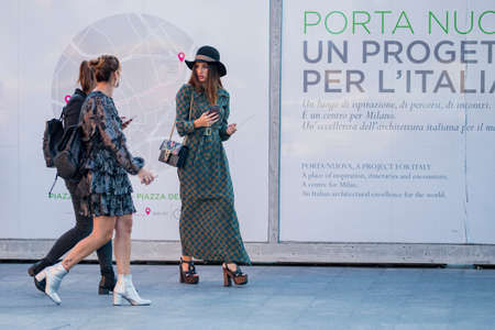 MILAN, Italy: 20 February 2020: Fashion bloggers street style outfits before Vivetta fashion show during Milan fashion week Spring / Summer 2020