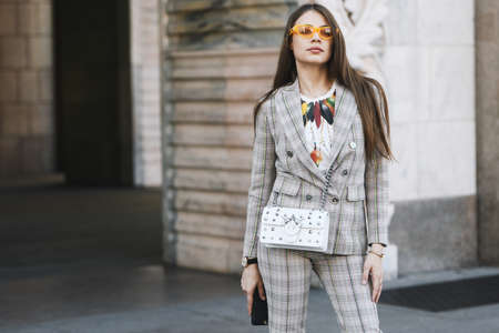Milan, Italy - February 24, 2019: Street style outfit before a fashion show during Milan Fashion Week - MFWFW19