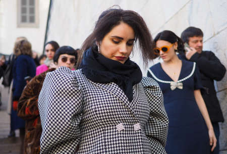 Milan, Italy - February 20, 2020: Street style appearance during Milan Fashion Week - streetstylefw20