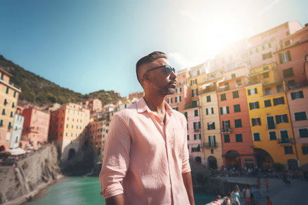 Man vacation enjoying. Businessman travel. Generate AI