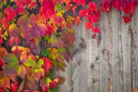 autumn background, bright foliage on the fence