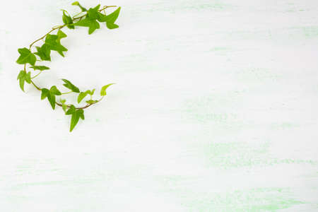 Ivy branch on light green background. Flowers postcard. Flowers greeting. Greeting card. Greeting background