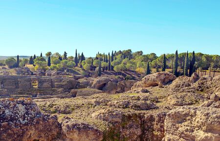 Roman ruins of Italica in Andalusia in a sunny day in the south of Spain