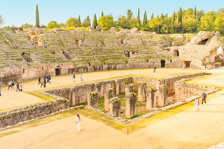 Merida, Spain - April 2019: Roman Amphitheatre of Merida