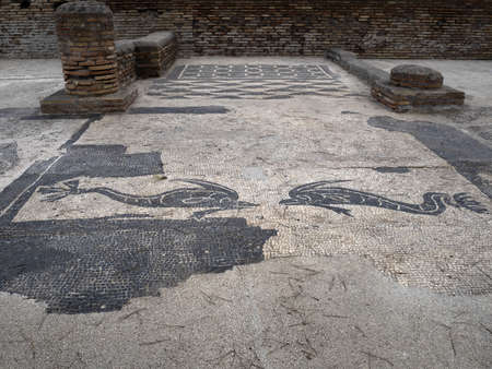 Roman mosaic pavement located in Piazza della Vittoria in the archaeological excavation of Ostia Antica - Rome