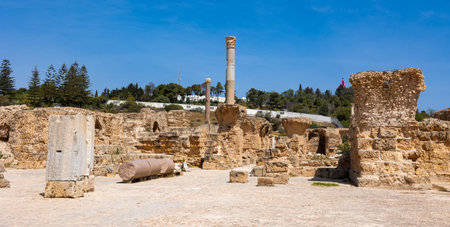 Baths of Carthage with remains of stone walls and Corinthian columns