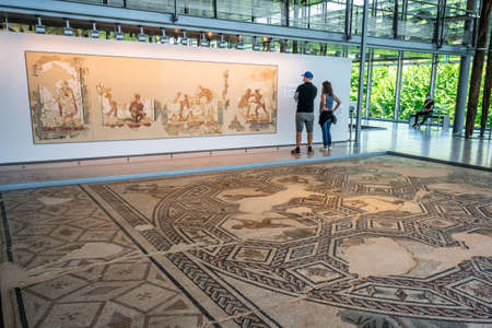 ISTANBUL, TURKEY - MAY 31, 2014 : Byzantine 5th century mosaics from the Great Palace Mosaic at the Istanbul Mosaic Museum.