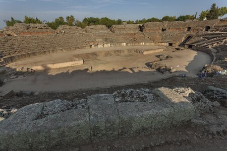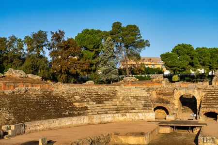 Roman Amphitheatre in Merida, Augusta Emerita in Extremadura, Spain. Roman City - Temples, Theatres, Monuments, Sculptures and Arenas