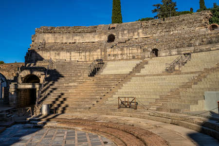 Very well preserved Roman theater and coliseum or Roman arena in the city of Merida