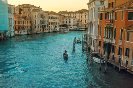 Beautiful view of the Grand Canal at sunset in Venice, Italy