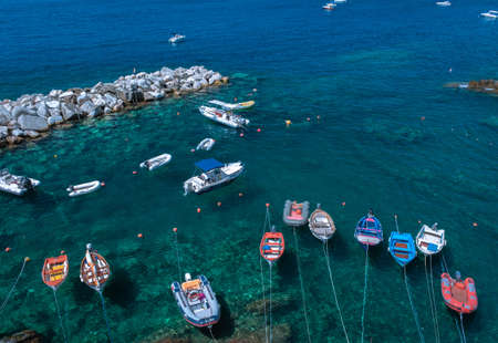Typical Ligurian boats moored in the small port of Manarola after a night of fishing.