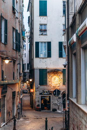 Genoa, Italy - September 22, 2024: Narrow alleys in the historic center of Genoa, showcasing the charm of the old town with its winding streets and traditional architecture