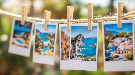Stunning coastal views from hanging polaroids on a sunny day.
