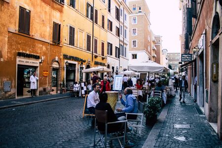 Rome Italy October 20, 2019 View of unknowns people eating in a restaurant in the streets of Rome in the afternoon