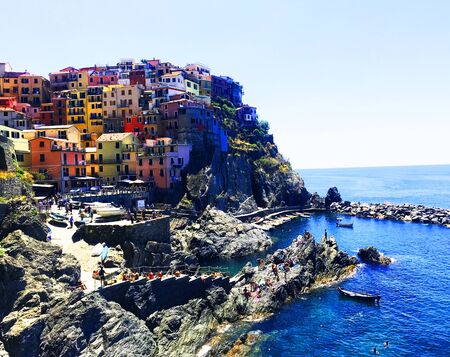 View of beautiful colorful village Manarola, Cinque Terre, coast of Italy