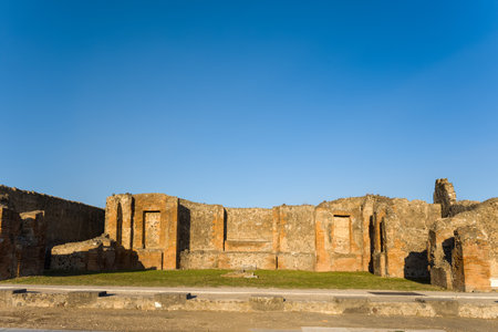 Ruins of the Building of Eumachia in the ancient city of Pompeii in a beautiful early spring day