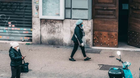 Italy, Milan, 05/31/2020, people walk wearing surgical mask due to the social distance for coronavirus covid