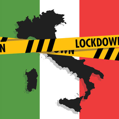 Italian map with lockdown tape. Coronavirus pandemic outbreak quarantine.