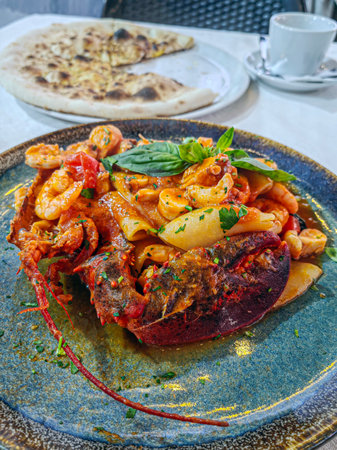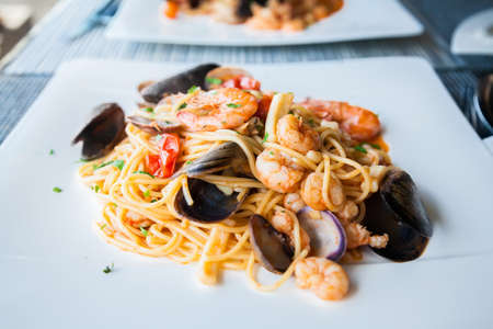 delicious italian Frutti Di Mare pasta with variety of seafood