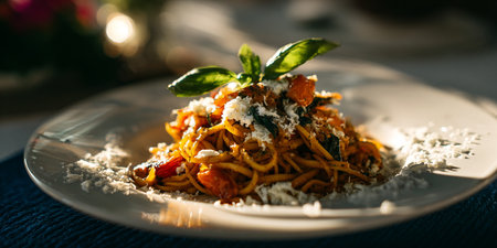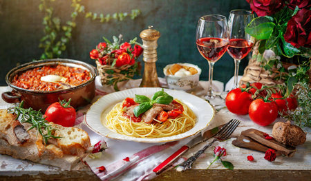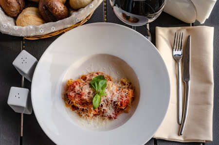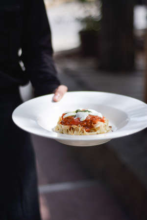 Delicious spaghetti bolognese served for lunch at luxury resort or restaurant