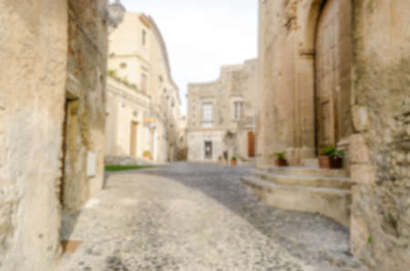Defocused background of an ancient street in old town of a southern Italy village. Intentionally blurred post production for bokeh effect
