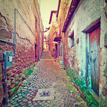 Narrow Alley with Old Buildings in Italian City of Cave,