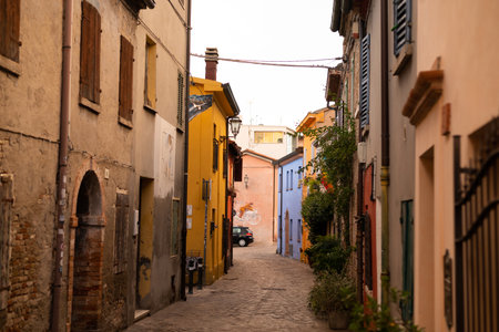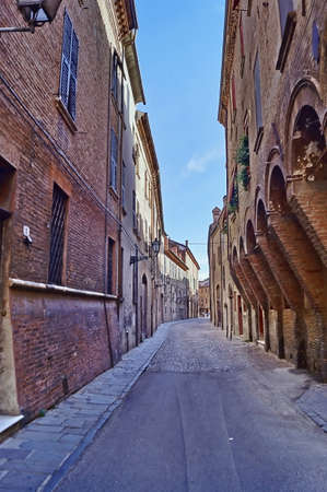 The traditional narrow medieval streets in Corinaldo, considered one of the most beautiful in Italy