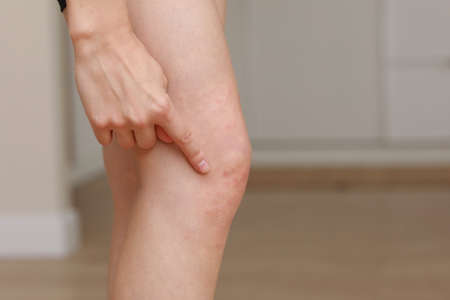 Young women develop rash on the legs Allergy symptoms He uses his hands to scratch the rash.
