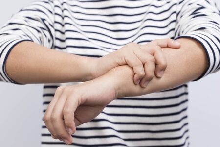 Woman having itchy and scratching her hand
